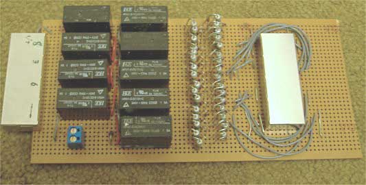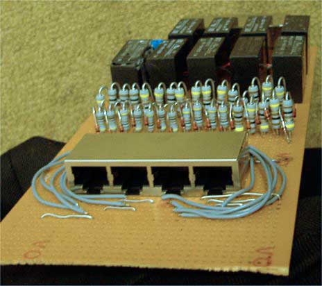 On the picture here you can see how I have used 2 banks of 4 RJ45 sockets to connect to the batteries and to connect to a smaller board with 16 orange LEDs on it for the display.