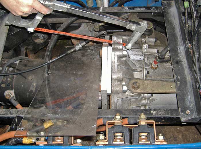 Here you can see that they are cutting a notch out of the transmission adaptor plate and the housing to accommodate the extra space for the battery.