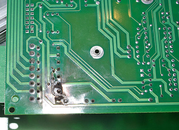 These two photos show the damaged area of the controller’s logic board. John, being an industrious fellow, managed to fix it.