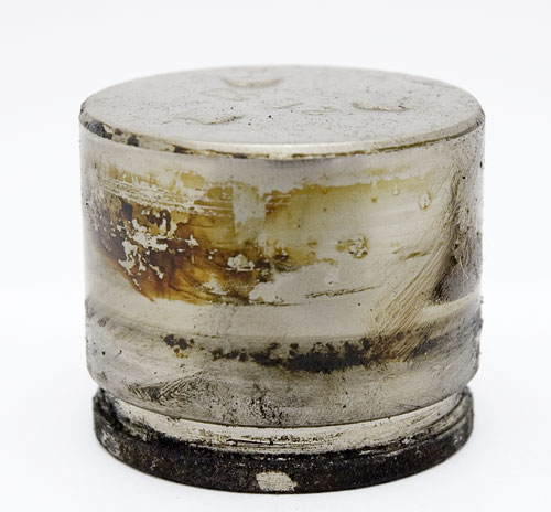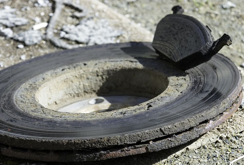 This photo, in case you are curious, is the little piston inside of the front caliper. Hydraulic oil pushes against the flat surface which in turn pushes and therefore squeezes the brake pads together. There’s a piston seal gasket inside the caliper and a rubber dust cover boot around the outer edge snapped onto the groove on the piston to keep hydraulics in and dirt and water out.