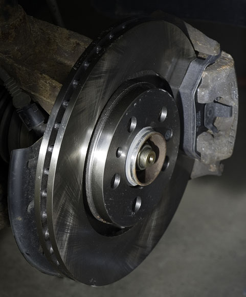 This photo isn’t actually of Eve’s front disc brakes, but of our old VW Golf. The Golf is due for inspection but the front brakes have been pretty noisy so I figured I’d work on them while working on Eve’s brakes. Good thing I checked, the front rotors and pads were in pretty bad shape.
