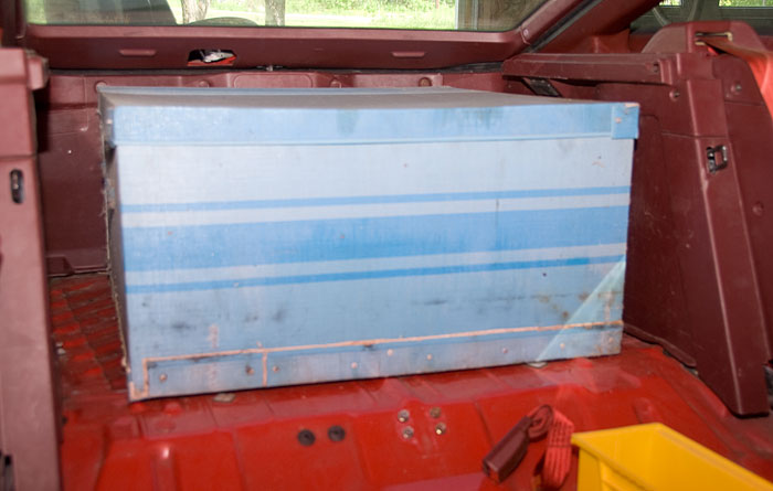 Ok, maybe I’m not that crazy. I pulled out the old battery boxes from our first EV and it looks like they will work nicely for the new batteries (still leaning towards Odyssey PC2150’s). So, the question becomes: how big of a hole should I cut in the trunk for the battery box? Measuring the space underneath and trying to eyeball where I’d be doing the welding for the frame, I got to wondering if it even needs to go that far. The batteries are only 9.5 inches high and, unless I really need trunk space, there’s no real reason to cut a hole in the trunk to sink the whole mess down a few inches. We’d only gain four or five inches of headroom, which really isn’t worth all of the metal work and cutting a whole in a perfectly good back end.