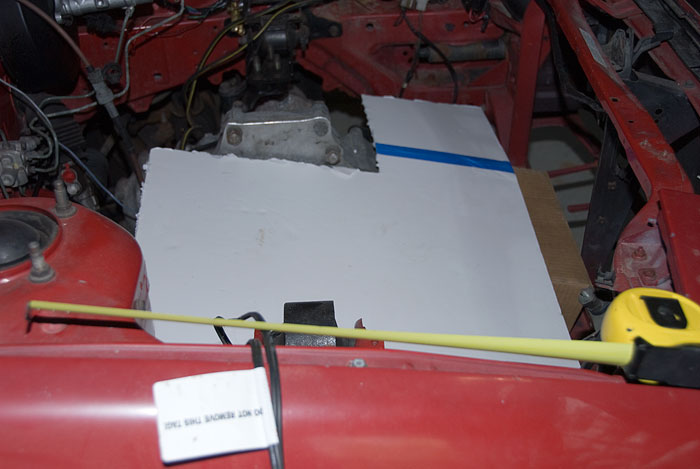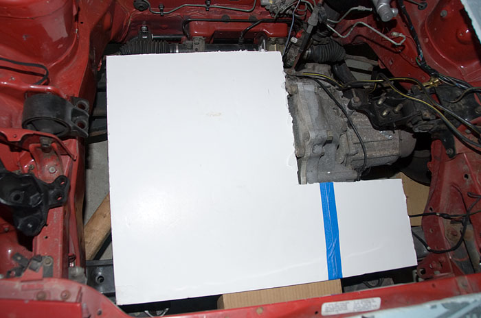 Notice in the photo on the left above that there’s a big hump sticking above the foam board mockup. I suspect it was part of the match-up to the gas engine, maybe integral for secure bolting between the transmission and engine or there was a part/shaft that went up through it. Here’s a question to any Probe aficionados or mechanics out there: can I cut it off? There’s a set of bolts a few inches below so it’s not like the motor mount would be less secure. Having the extra few inches make allow a battery box that goes all the way across, assuming I can figure out how to cut it off without destroying something. Just some idle thinking on a Sunday afternoon.
