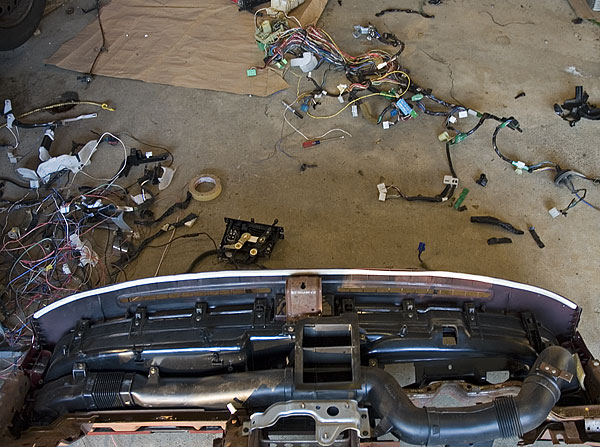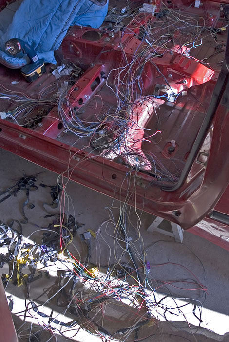 By the time I finished the passenger compartment (not the dash mind you) all that was left was mirror wiring and the rear turn signal, braking and reverse lights, and the rear defrost circuit. There are no longer any wires in the middle of the passenger compartment or on the passenger side. None.